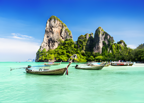 Krabi is famous for its dramatic limestone cliffs, beautiful islands, and clear waters. Railay Beach, Ao Nang, and Four-Island tours are top highlights. It is perfect for nature lovers and adventure seekers.